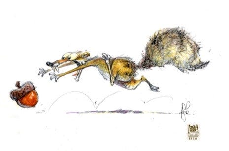 His talk at the Normal Rockwell Museum, Inspired by the Masters, is an excellent watch to see some of his inspirations. He also speaks to his appreciation of sketches as complete art on their own, a message I deeply appreciated hearing from someone as accomplished as him. One of my favorite characters of his is Scrat, from the Ice Age animated films: