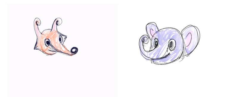 For the elephant, I want them to lift their head a bit as if theyāre about to sneeze, and as they come down, their nose bursts out like a birthday whistle (a.k.a. party horn.) For the fox, I imagined that his nose snaps down abruptly, kinda like those old wrist slap bracelets everyone wrote back in my middle school days.