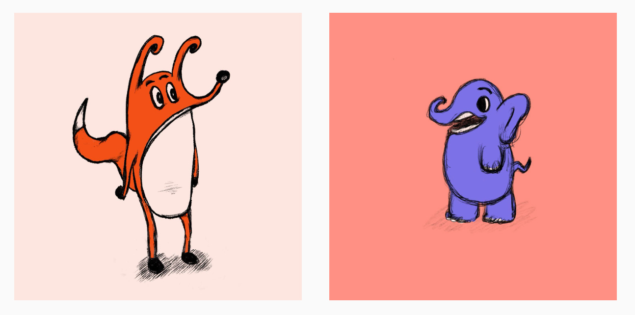 The first step is plan the animation. When I saw Giuliaās example animation, Iāll admit I was quite intimidated at first. But then she broke it down into steps, and I could see how each stage could be implemented progressively. For my project, I wanted to animate two of my characters: Elly the elephant, and our friendly neighborhood Quick Brown Fox: